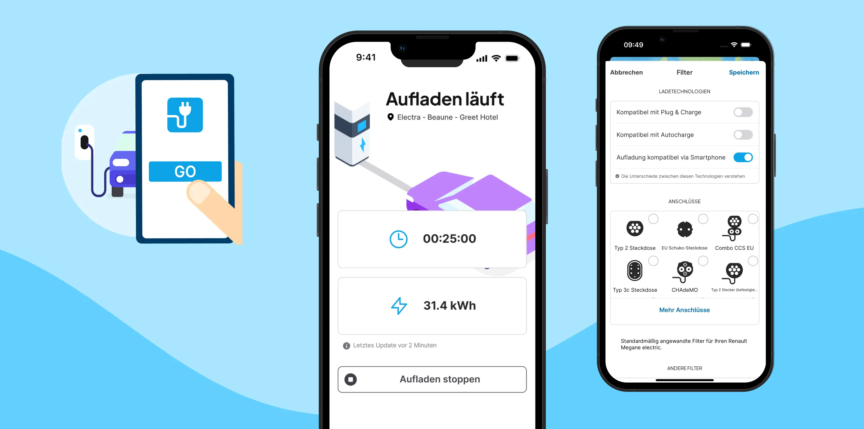 Diese Funktion ist an mehreren hunderttausend Ladepunkten in Europa verfügbar. Mit dem Filter „Aufladen via Smartphone“ finden Sie sie in der App auf einen Blick.
