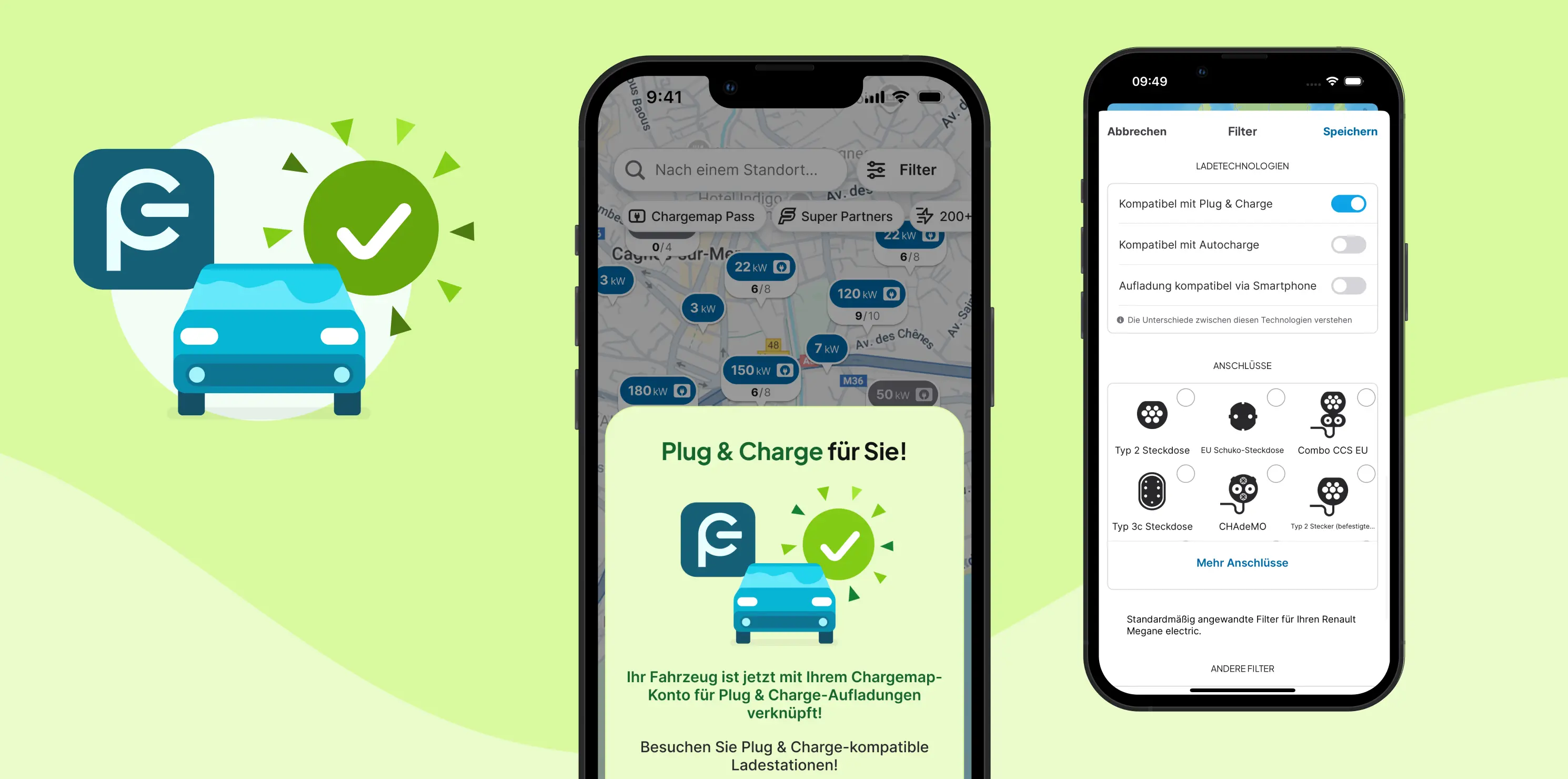 - Sind Ihr Fahrzeug und die Ladesäule mit Plug and Charge kompatibel, startet der Ladevorgang ebenfalls automatisch beim Anschließen. Die Aktivierung erfolgt in wenigen Schritten in der Chargemap-App. Dies ist die fortschrittlichste und sicherste Ladetechnologie auf dem Markt.