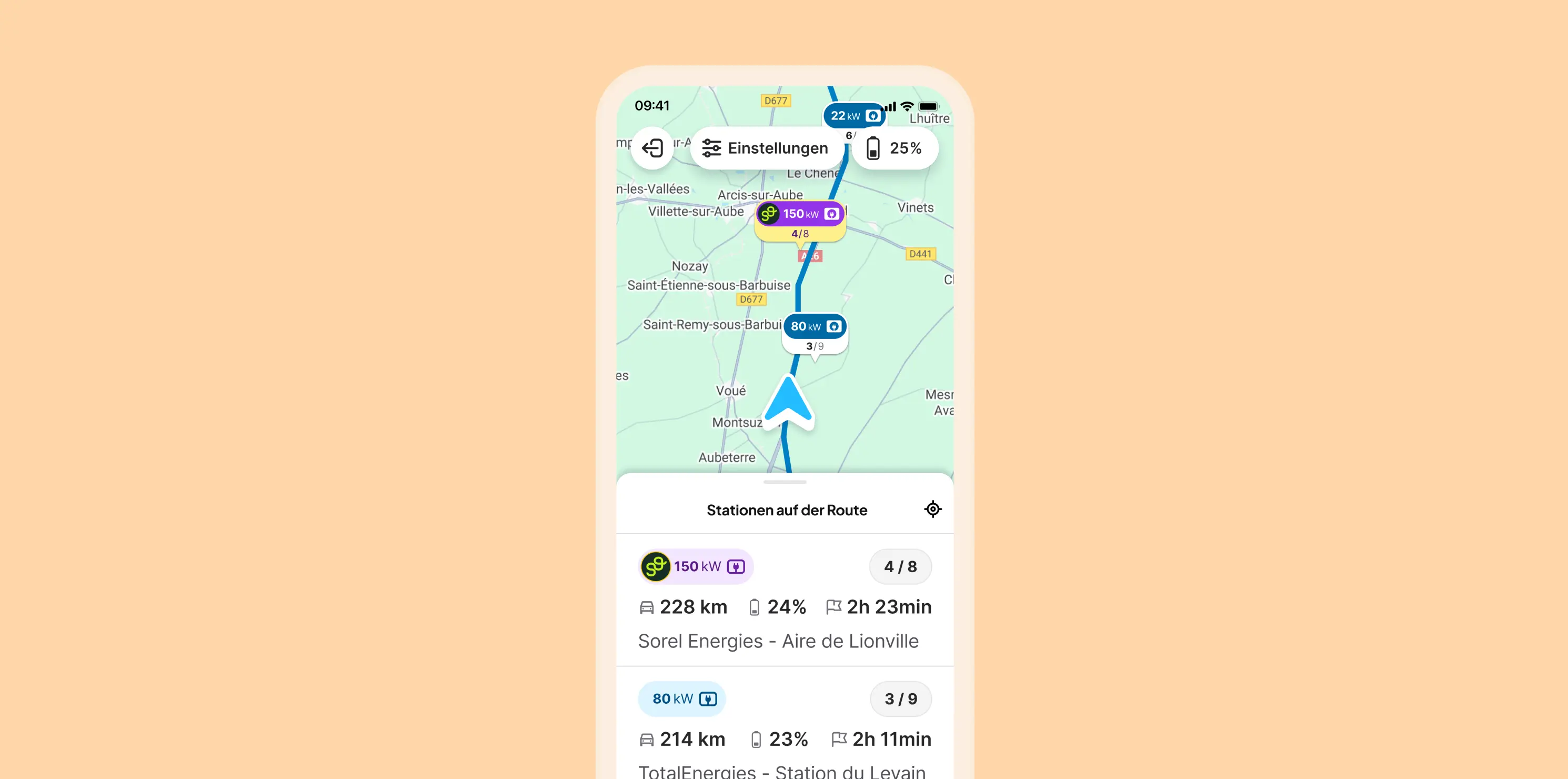 Chargemap bietet Ihnen eine optimierte, realistische und auf Ihr Fahrzeug abgestimmte Route. So sparen Sie Zeit und vermeiden unangenehme Überraschungen!