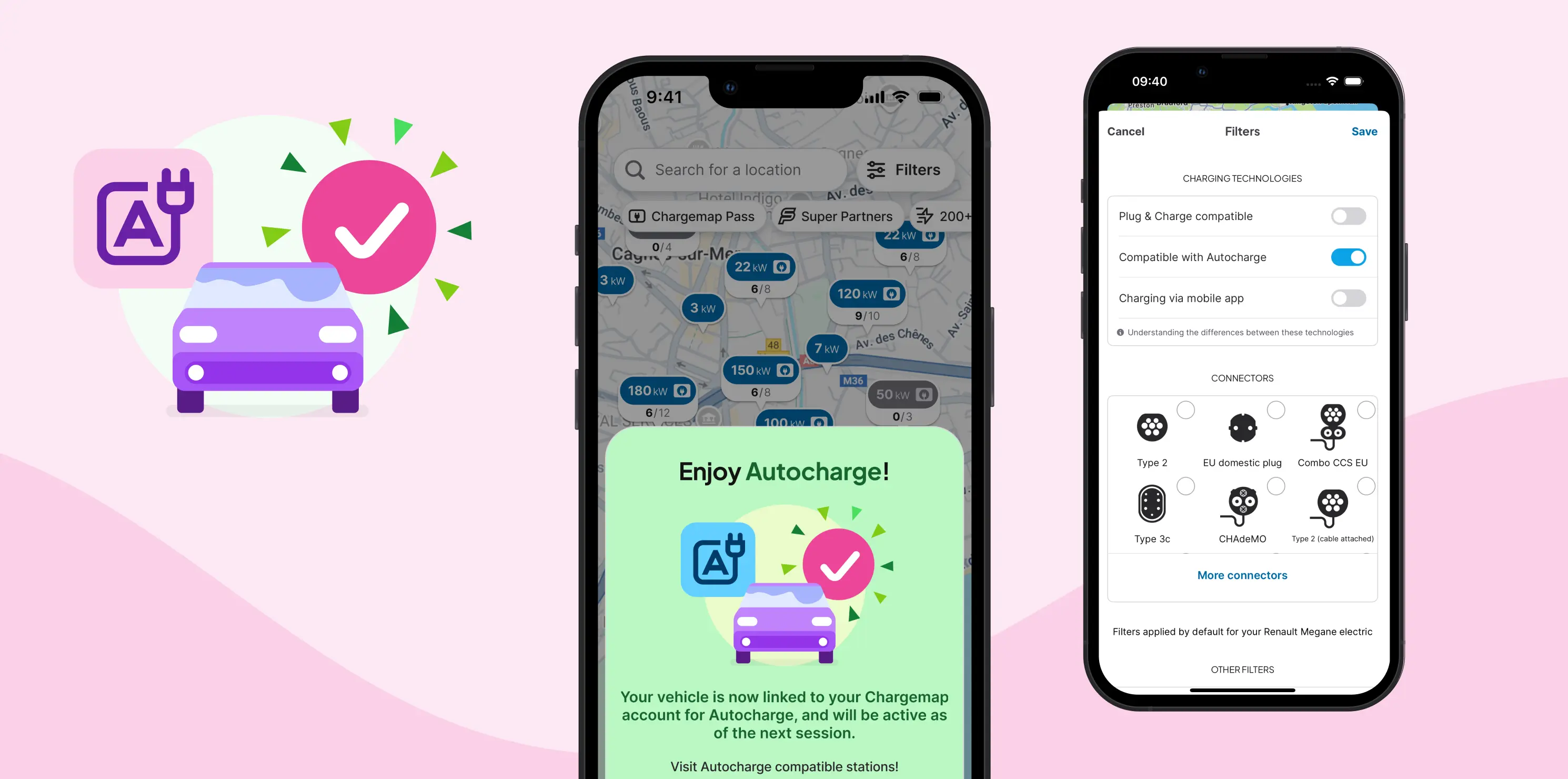 Please note: Autocharge is only available on fast chargers (DC) and requires your vehicle to have a unique identifier. You can check compatibility directly in the Chargemap app in the Vehicle section.